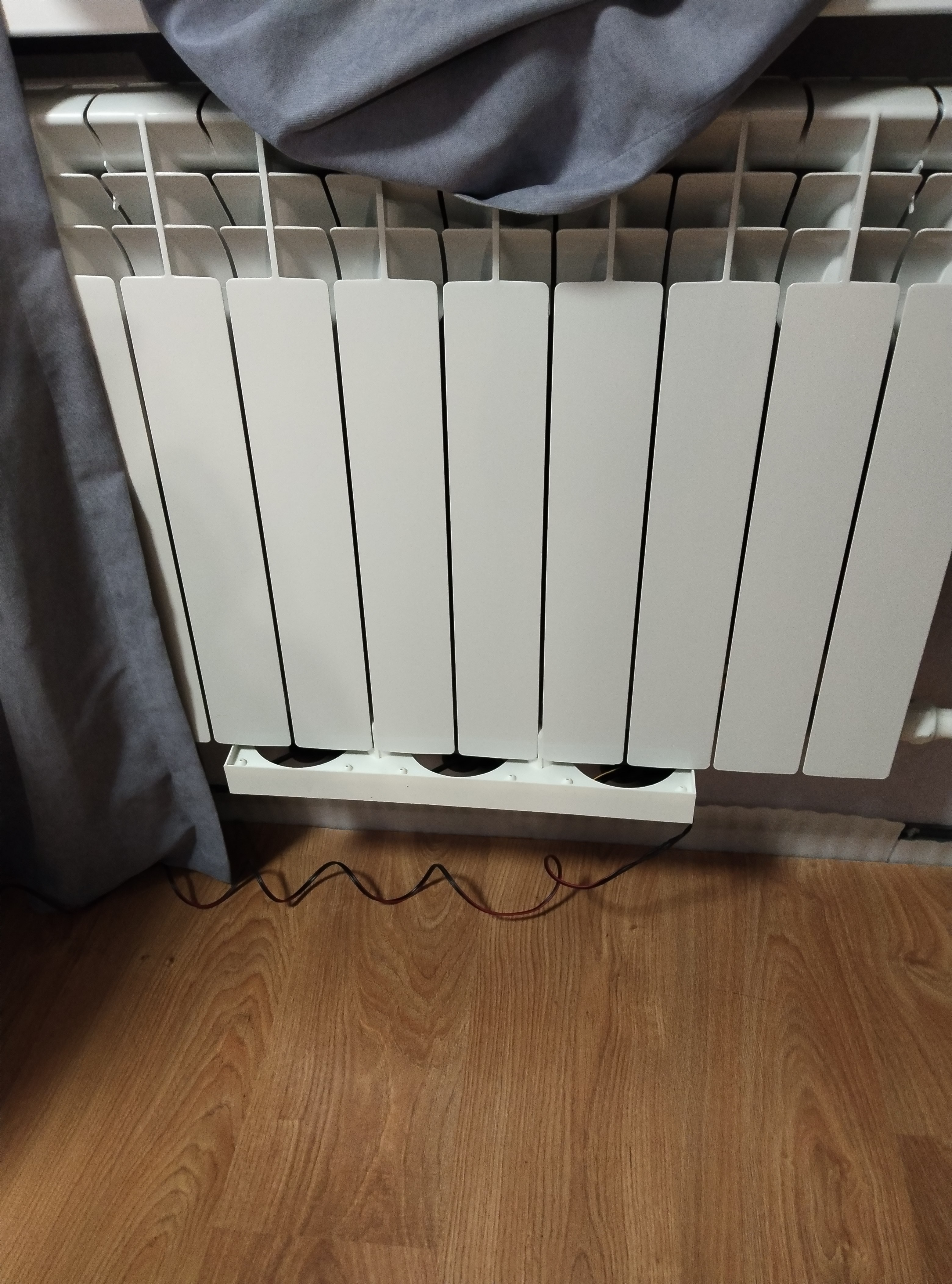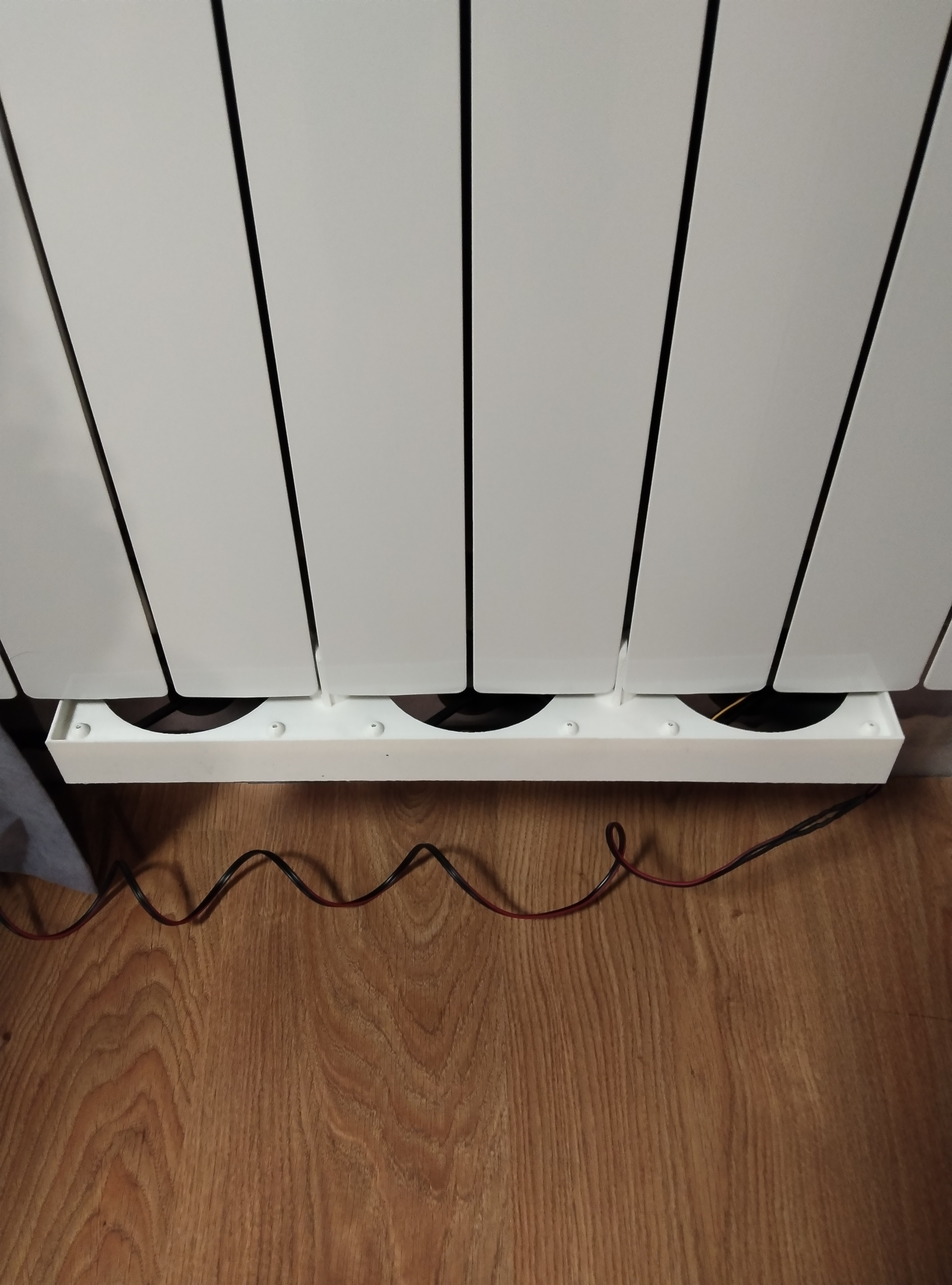 Если дома или в офисе вам не хватает зимой тепла от радиаторов и не хочется платить за лишнее электричество для комфорта, то просто поставьте усилитель отопления. Потребляет не больше 10 Вт, а выдает не одну сотню! Конструктивно изделие представляет собой платформу (напечатанную из ABS-пластика) с закрепленными на ней вентиляторами 12В. Возможно изготовление как платформы отдельно, так и изделия в целом с установленными вентиляторами (блок питания в комплект не входит). На данный момент изготавливаются модели для алюминиевых радиаторов с шириной секции 80 мм (с вентиляторами 80х80 или 120х120 мм) По запросу возможно изготовление изделий для чугунных радиаторов с шириной секции 100 мм.
